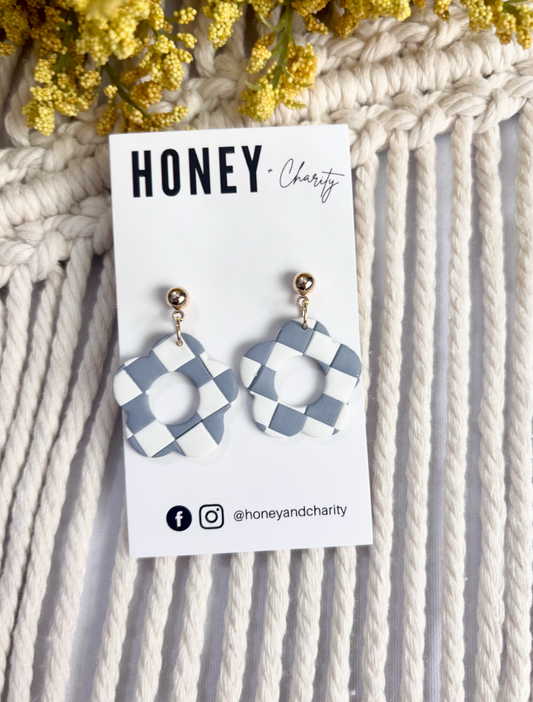 Large Checkered Flower Dangles